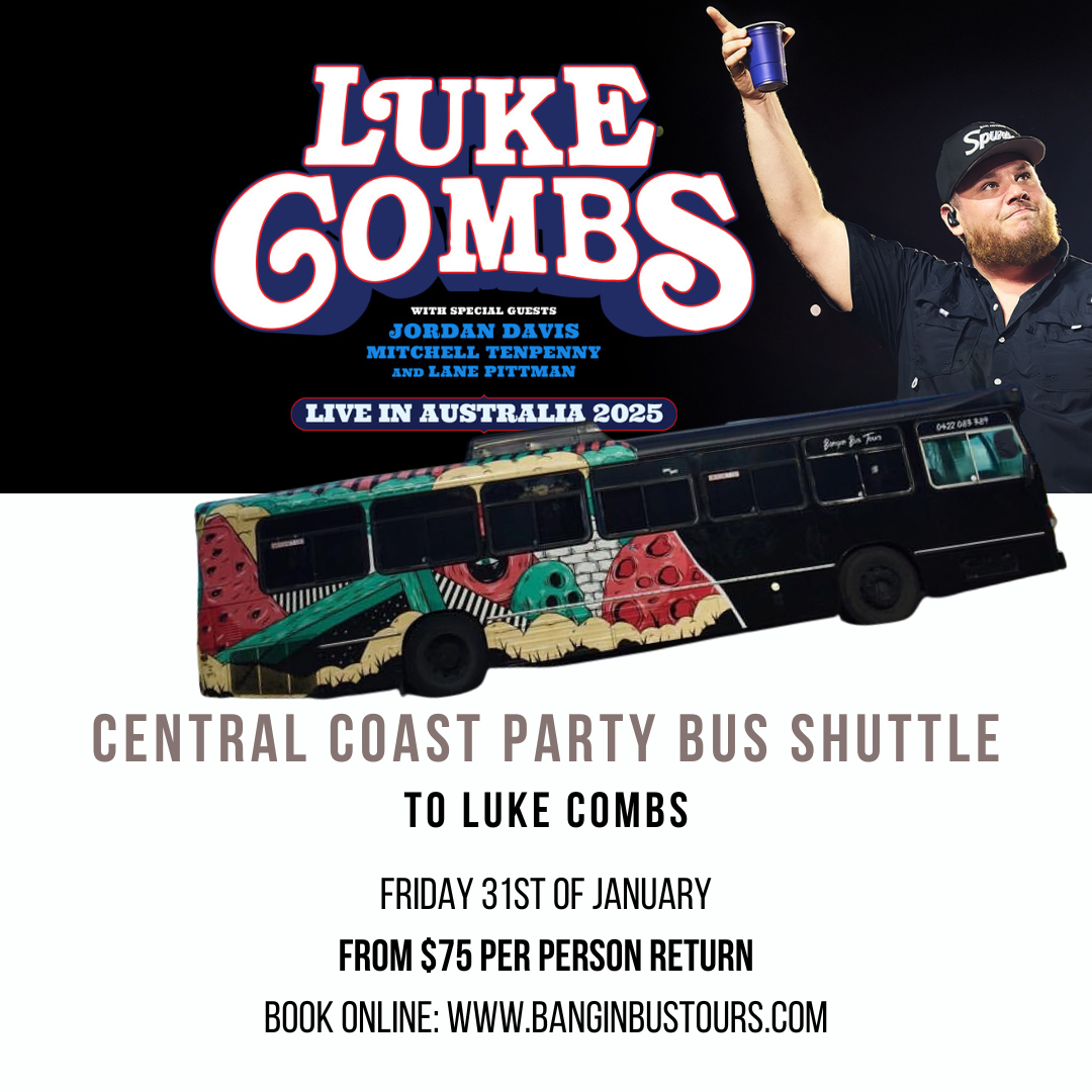 Head to Luke Combs with ease by booking in our Central Coast Party Bus Shuttle. Transporting you from the Central Coast to Accor Stadium and return from $75 per person. Your favourite party bus on the Central Coast Bangin Bus Tours is officially doing shuttle bus services for most major upcoming events! 🥳