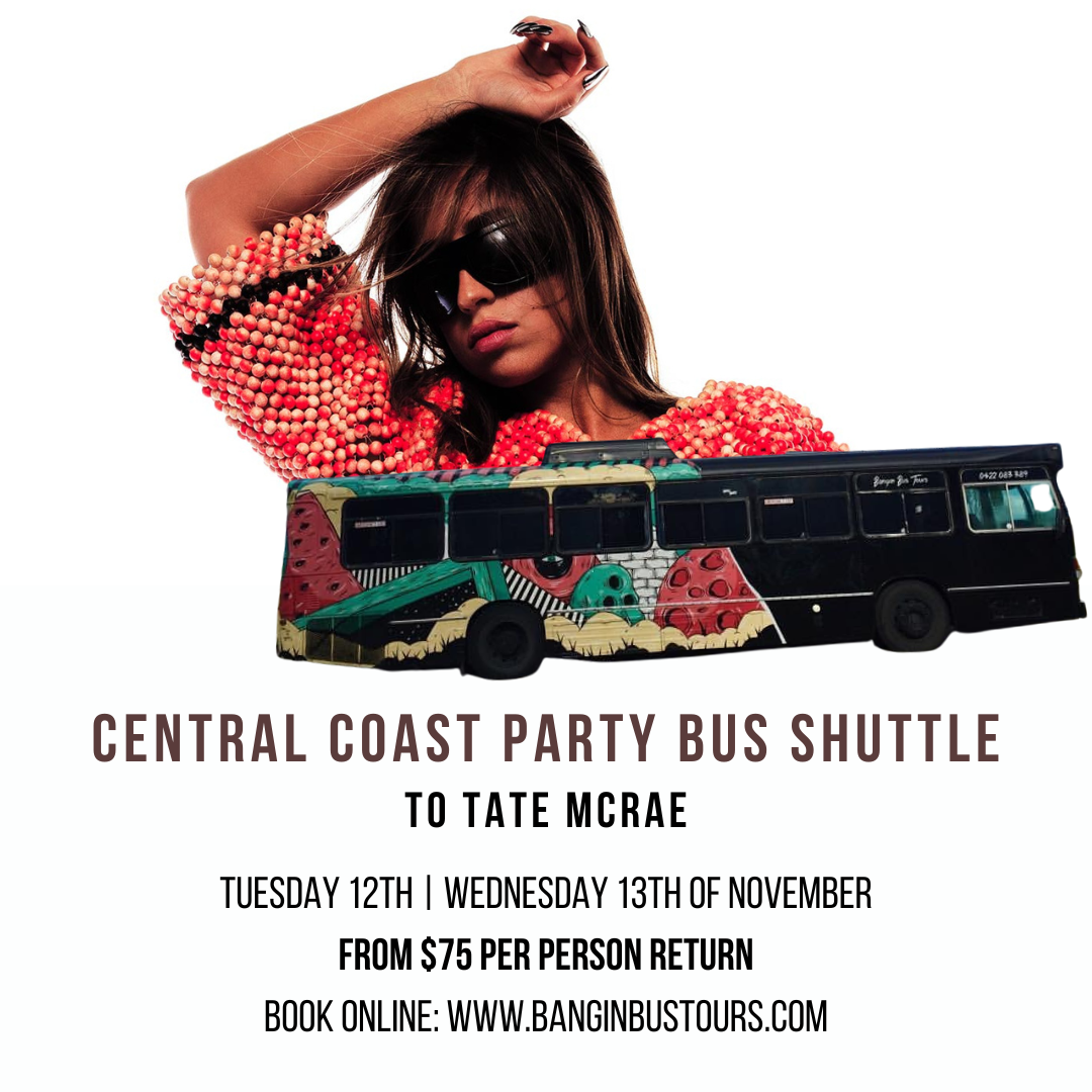 Head to Tate McRae with ease by booking in our Central Coast Party Bus Shuttle. Transporting you from the Central Coast to Hordern Pavilion and return from $75 per person. Your favourite party bus on the Central Coast Bangin Bus Tours is officially doing shuttle bus services for most major upcoming events! 🥳